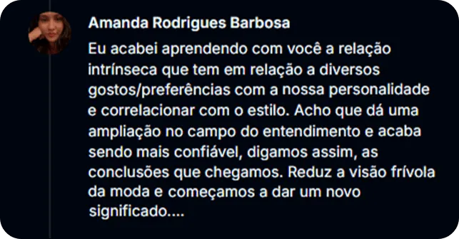Através da Metodologia das Estéticas, um método que une cultura, estilo e posicionamento, você vai transformar sua relação com a sua imagem.