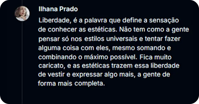 Se você já se perguntou como encontrar o seu estilo, saiba que você não precisa se encaixar em um rótulo — precisa se reconhecer. Neste módulo, você vai conhecer 22 estéticas de estilo e entender como usá-las como referência para construir um estilo único e seu. Um guia para transformar gostos soltos em um estilo com direção, autenticidade e intenção.