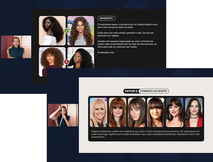 Nem toda roupa, corte de cabelo ou maquiagem funciona para todo mundo — e o motivo está na sua identidade corporal. Neste módulo, você vai descobrir o que funciona para o seu corpo, quais cortes de cabelo harmonizam com o formato do seu rosto, se tintura ou luzes realçam sua imagem e qual estilo de maquiagem destaca sua beleza natural.
