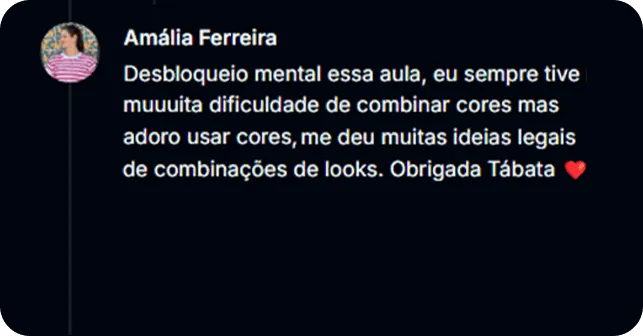Você vai aprender um método atualizado e intuitivo para combinar cores e estampas de forma equilibrada, deixando qualquer look mais refinado, sem depender de regras engessadas. Além disso, vai descobrir quais cores mais valorizam sua beleza natural e como usá-las a seu favor, criando composições sofisticadas, harmoniosas e alinhadas com a sua identidade.